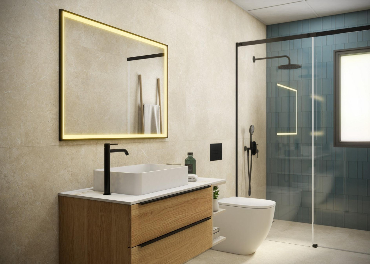 Los baños incluyen muebles, mamparas de ducha y calefacción por suelo radiante, lo que garantiza el confort y la calidad en cada detalle. Los estándares generales de construcción se centran en la eficiencia, el diseño y el valor a largo plazo.