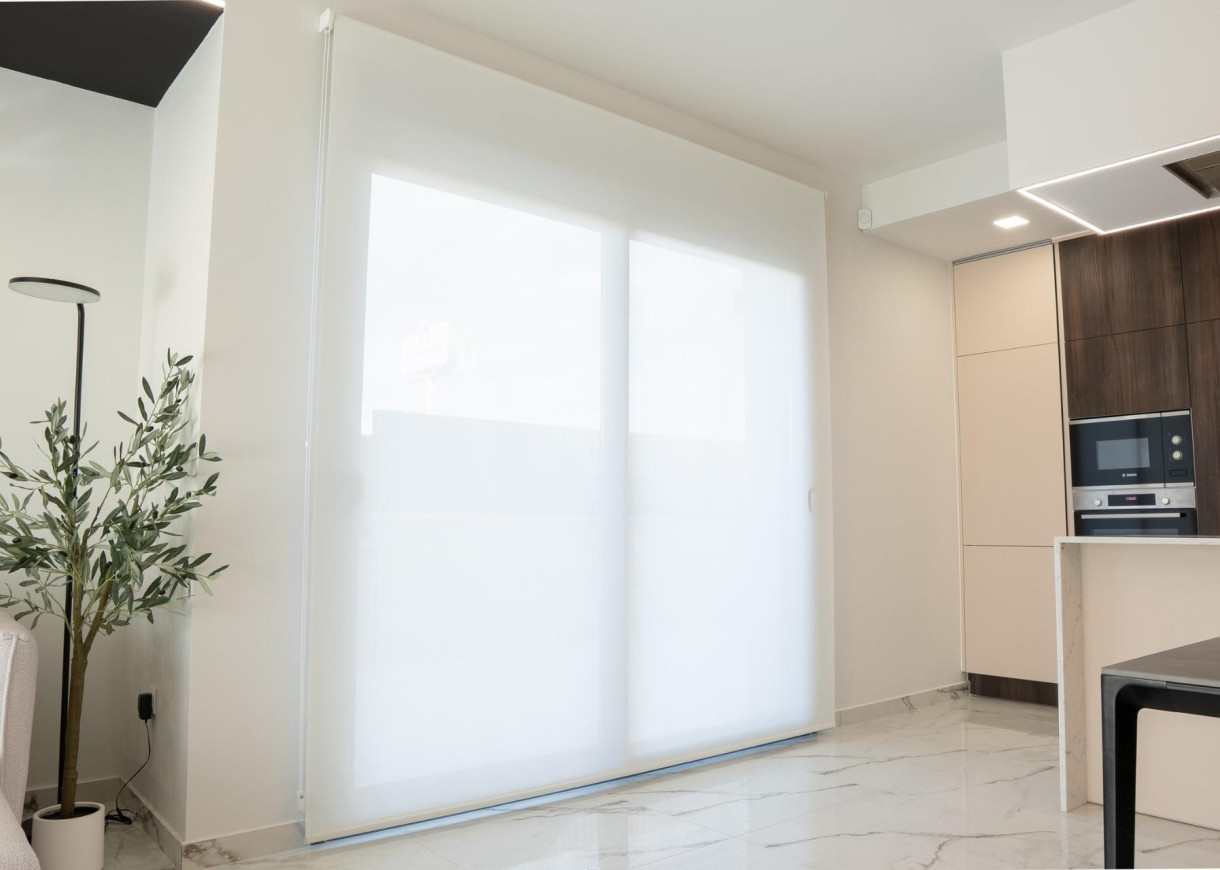 PVC ramen met dubbele beglazing en op afstand bedienbare gemotoriseerde rolluiken.