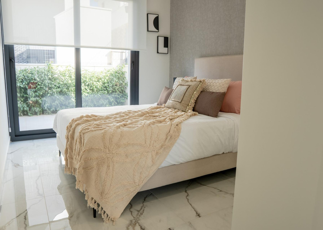 Bungalows: Units op de begane grond met een privétuin of op de bovenste verdieping met een solarium. Alle bungalows hebben twee slaapkamers, twee badkamers, een parkeerplaats en een berging, gelegen rond een centrale gemeenschappelijke ruimte met een zwembad en aangelegde tuinen.