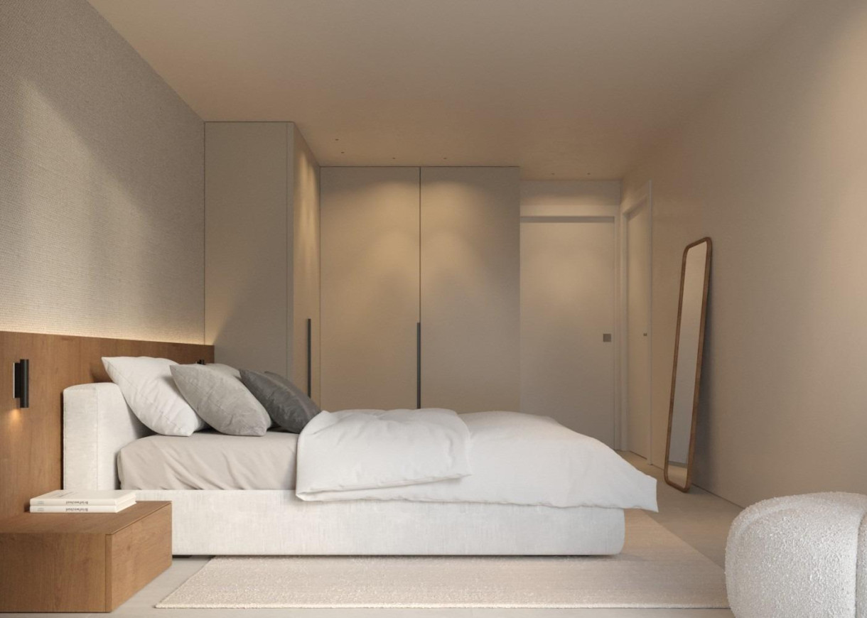 Binnen bieden de villa's een lichte en elegante open woon- en eetkamer met een moderne geïntegreerde keuken en een kookeiland. Grote schuifdeuren met verzonken rails zorgen voor een naadloze overgang tussen binnen- en buitenruimtes en bieden directe toegang tot de tuin, het zwembad en de parkeerplaats. Deze doordachte indeling versterkt het natuurlijke licht en creëert een uitnodigende sfeer voor het dagelijks leven en entertainment.