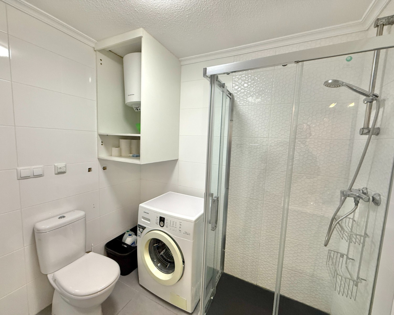 Badrum med dusch.